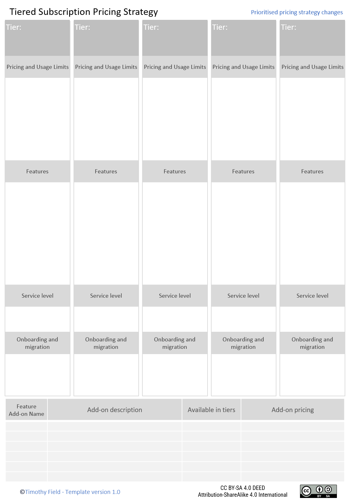 Tiered subscription pricing — Tiers exist, but the progression between them does not feel intentional. A customer looking across the tiers would struggle to understand why each one is priced where it is.