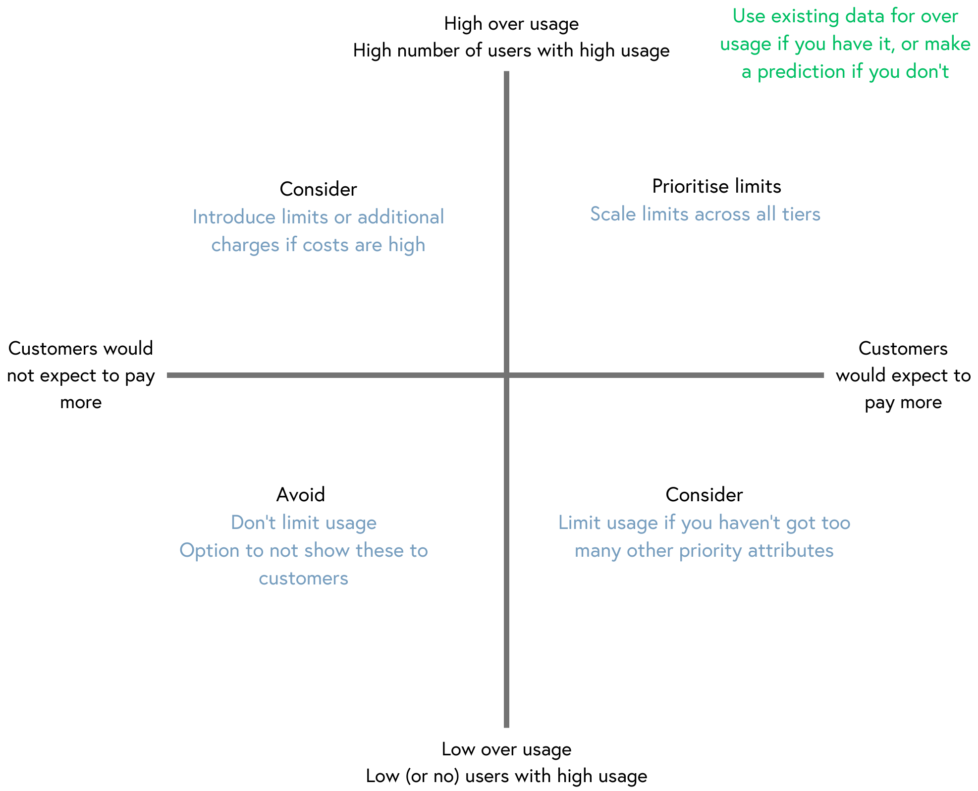 Constraints may be applied strategically to discourage unprofitable behaviour or customer types. This could include setting high prices or limiting service quality. For example, to discourage light users, setting a high entry price, or to discourage enterprise customers, not offering premium integrations.